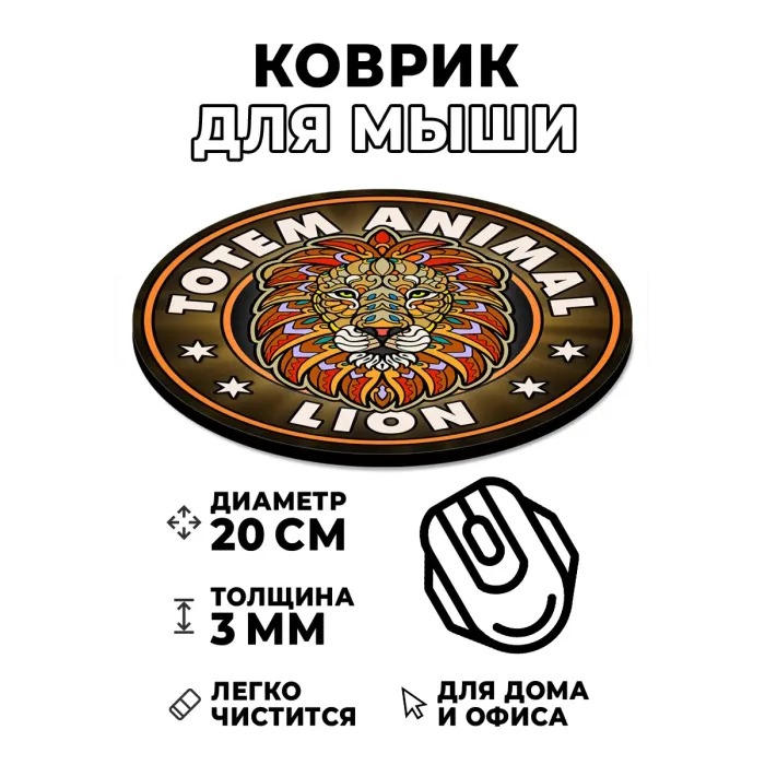 Коврик для мыши Totem Lion (Лев), d.20см KM1141