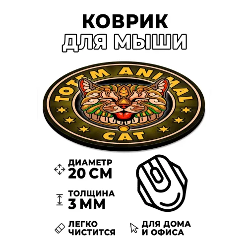 Коврик для мыши Totem Cat (Кот), d.20см KM1151
