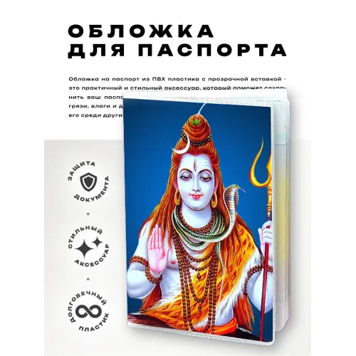 Обложка для паспорта Шива выполнена из прозрачного ПВХ-пластика и украшена полиграфической вставкой. Этот стильный аксессуар не только защищает паспорт от повреждений, но и придаёт ему оригинальный вид. Обе стороны обложки имеют одинаковое изображение, что делает её универсальной и привлекательной. Упаковка в полипропиленовый пакет с вырубкой под еврокрючок обеспечивает удобство хранения и транспортировки. Такой подарок станет отличным дополнением к любому путешествию или важному событию.