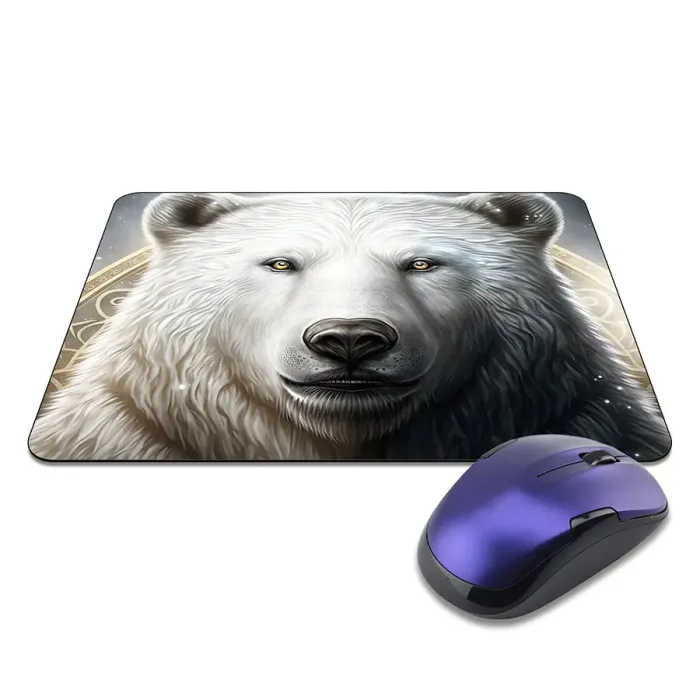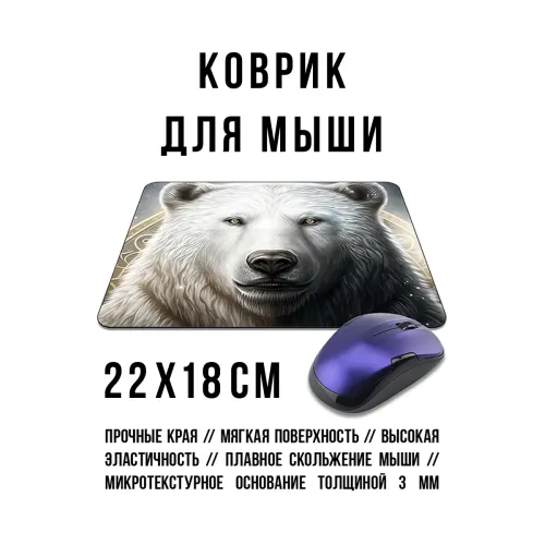 Коврик для мыши с изображением белого медведя. Прорезиненная основа.