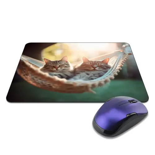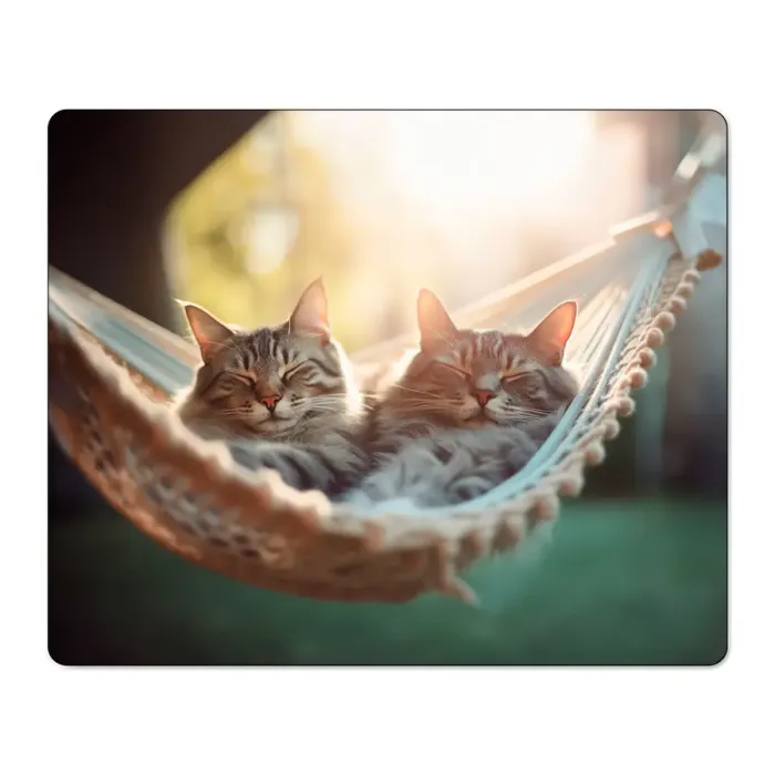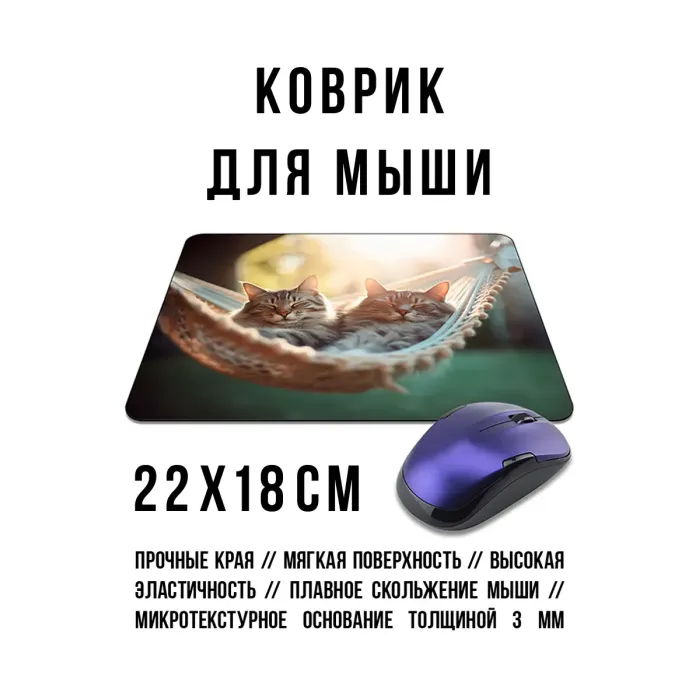 Коврик для мыши с изображением котов на гамаке. Материал: ткань с прорезиненной основой.