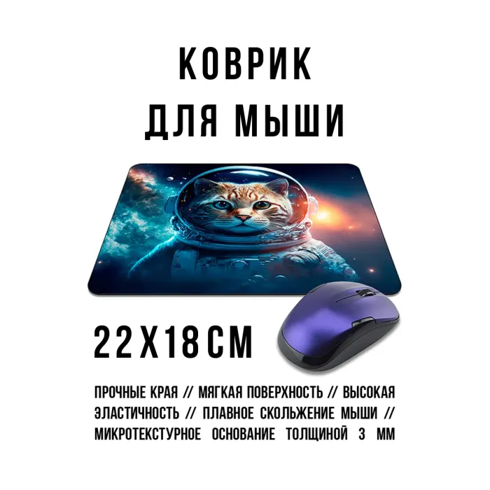 Коврик для компьютерной мыши с изображением кота в космосе — это не только стильный аксессуар, но и практичное решение для комфортной работы. Прорезиненная основа обеспечивает отличное сцепление с поверхностью, предотвращая скольжение. Размер коврика составляет 22х18 см, а толщина — 3 мм, что делает его удобным в использовании. Стойкое и четкое изображение добавляет яркие акценты на рабочем месте, а хорошее скольжение мышки способствует повышению эффективности работы. Этот коврик станет отличным дополнением к любому офису или домашнему компьютеру.