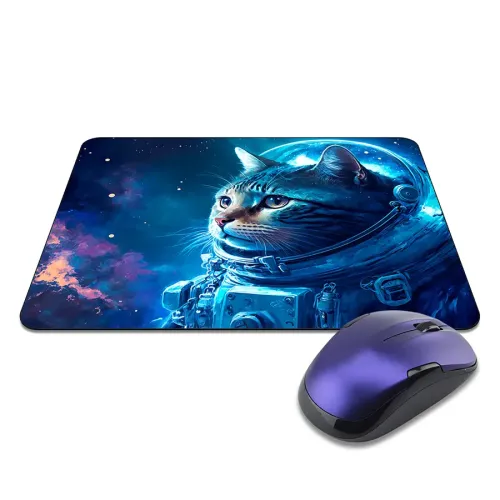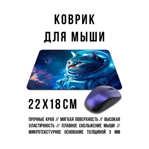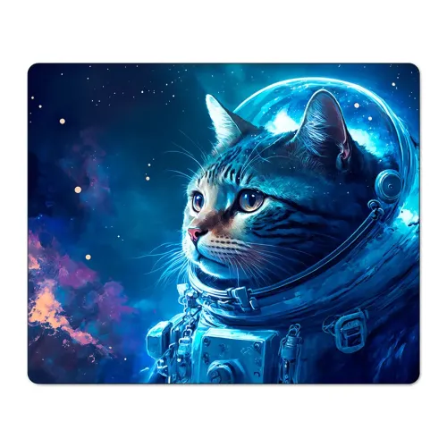 Коврик для компьютерной мыши с изображением кошки в скафандре.