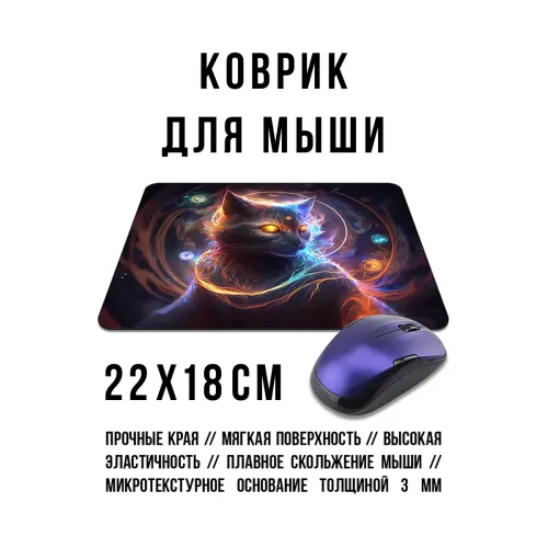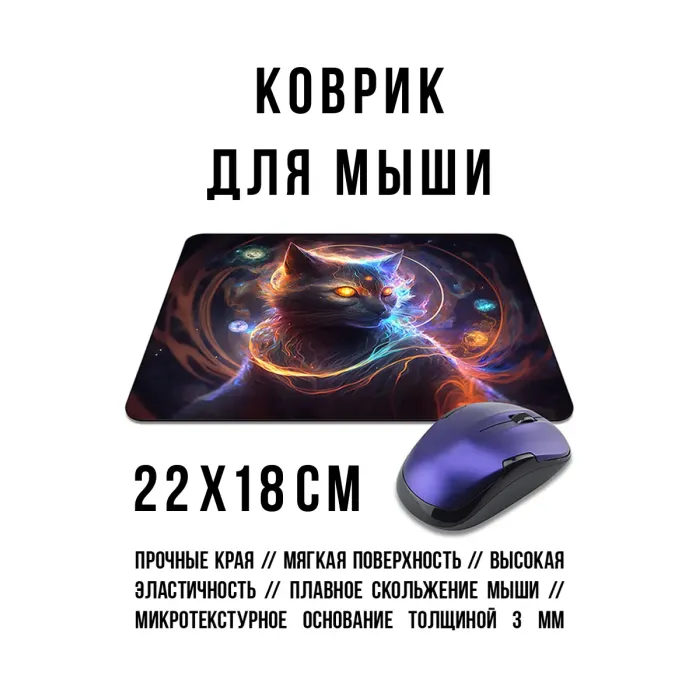 Коврик для мыши с изображением кота. Материал: ткань с прорезиненной основой.