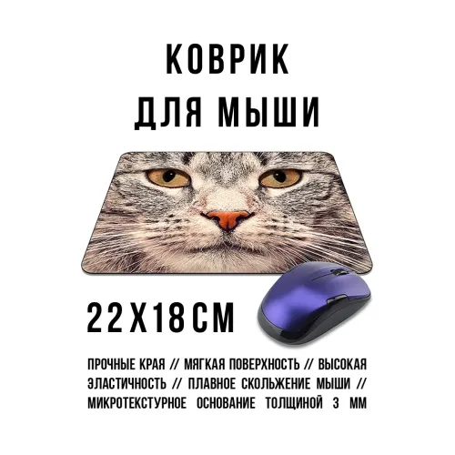 Коврик для мыши с изображением кота. Материал: прорезиненная основа.
