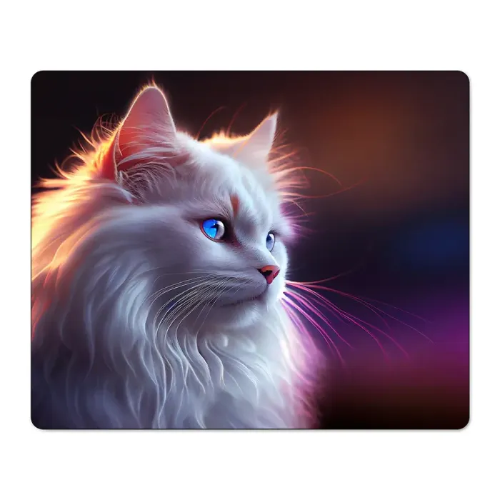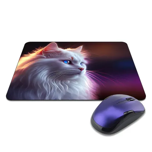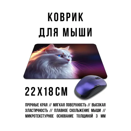 Коврик для мыши с изображением белой кошки. Изготовлен из прорезиненного материала.