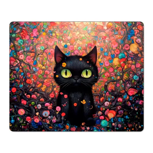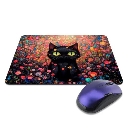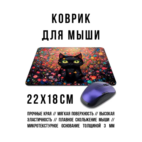 Коврик для мыши с изображением кота в цветах. Имеет прорезиненную основу.