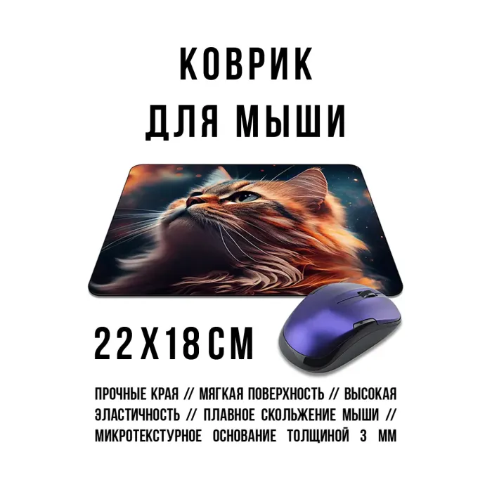 Коврик для мыши с изображением кота. Изготовлен из прорезиненного материала.