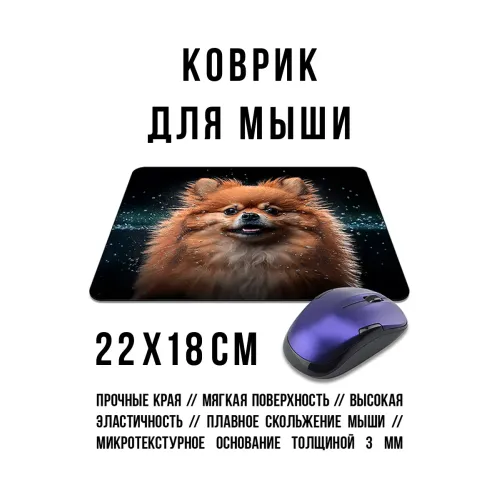 Коврик для мыши с изображением шпица. Изготовлен из прорезиненного материала.