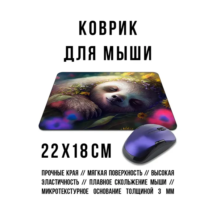 Коврик для мыши 22х18см Спящий ленивец KMP712