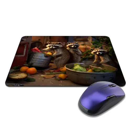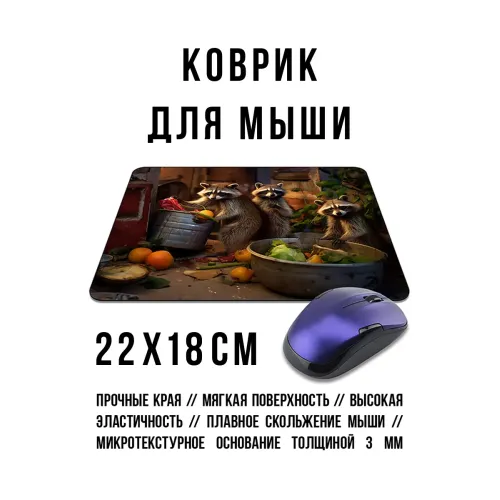 Коврик для компьютерной мыши с изображением енотов. Прорезиненная основа.