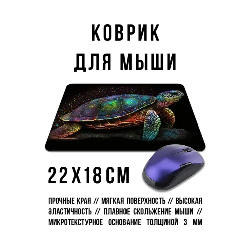 Коврик для мыши с изображением черепахи. Имеет прорезиненную основу.