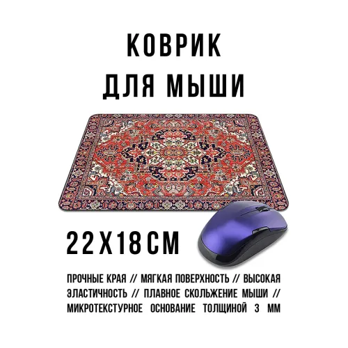 Коврик для мыши с изображением персидского ковра — это не только полезный аксессуар, но и стильное украшение рабочего пространства. Он выполнен из высококачественного прорезиненного материала, что обеспечивает отличное сцепление с поверхностью стола и предотвращает скольжение.
