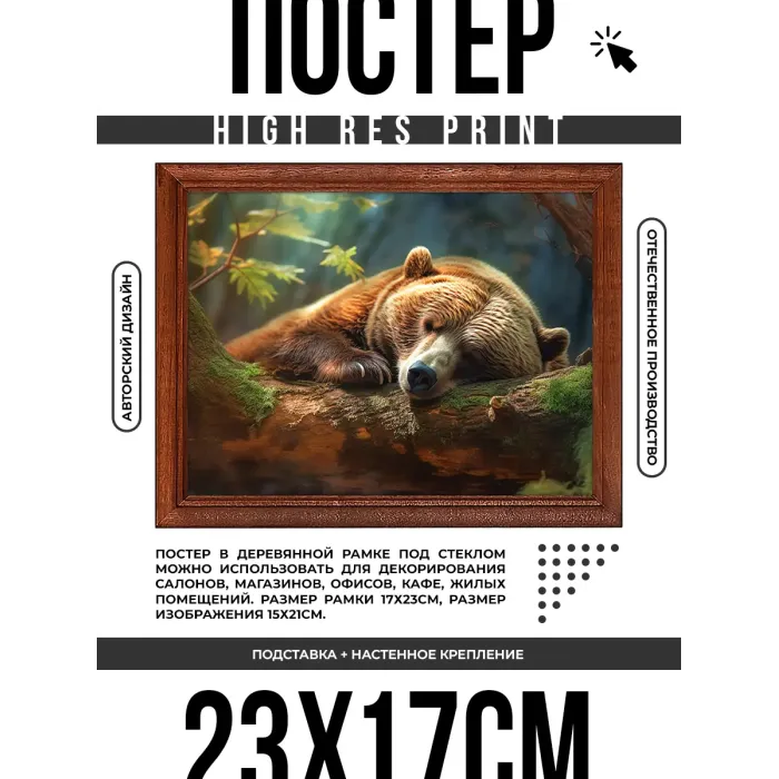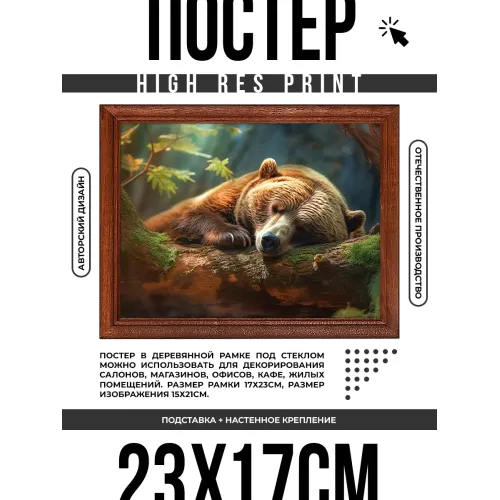 Постер в рамке 22х17см Мишка в лесу POSG-0286