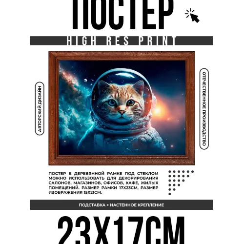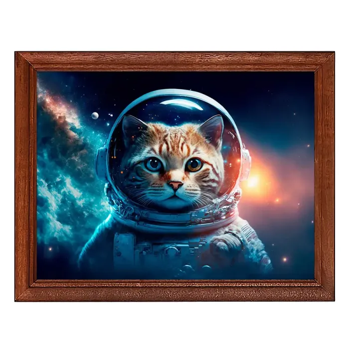 Постер в рамке с изображением кота в космосе для интерьерного декора.