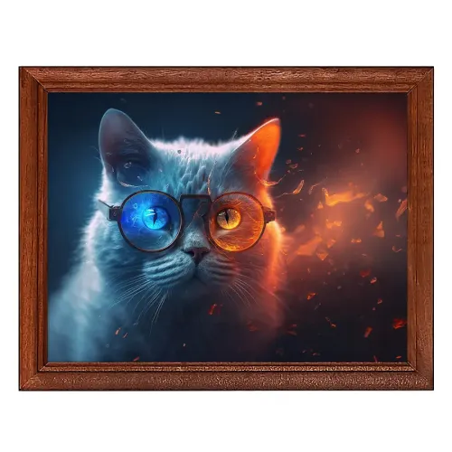 Постер в рамке для интерьерного декора. Изображение кота в круглых очках.