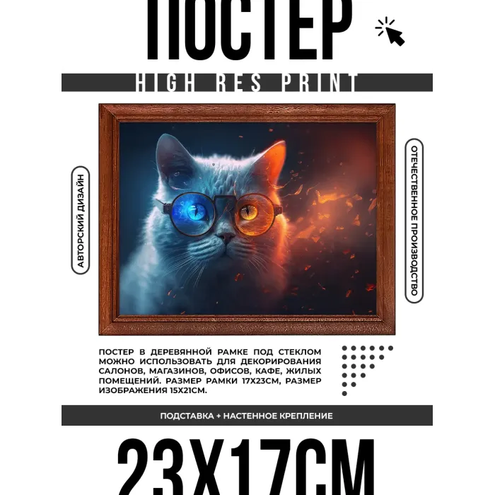 Постер в рамке 22х17см Кот в круглых очках POSG-0311