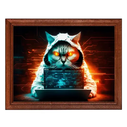 Постер в рамке для интерьерного декора с изображением кота-хакера.