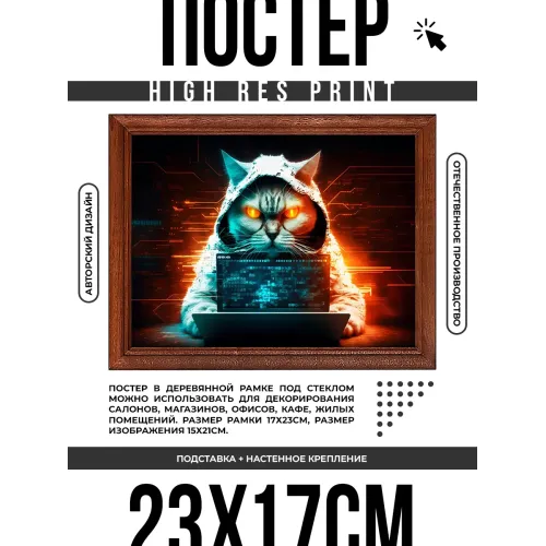 Постер в рамке 22х17см Кот хакер POSG-0313
