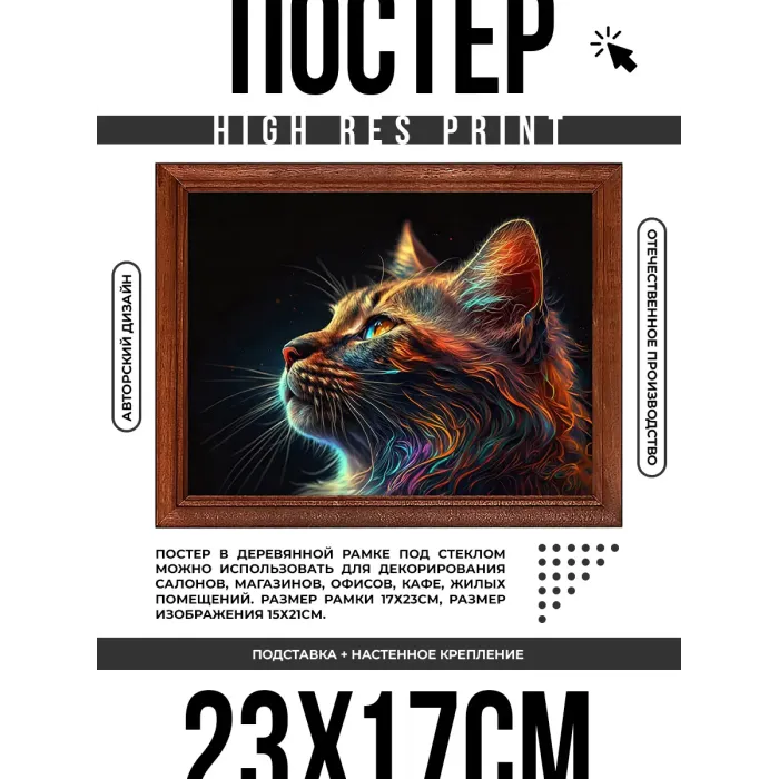 Постер в рамке 22х17см Кот в профиль POSG-0317