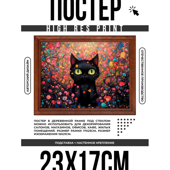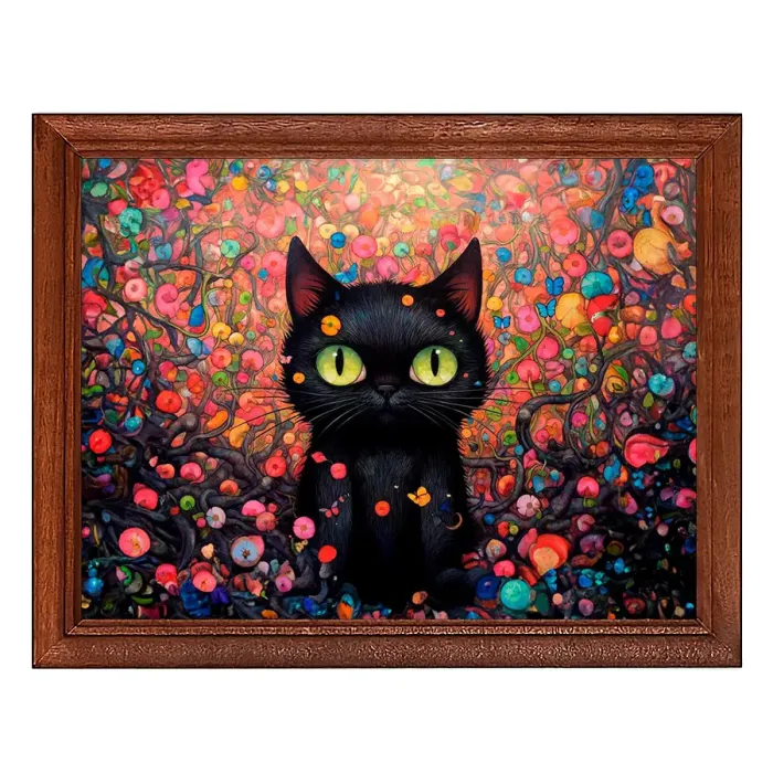 Постер в рамке с изображением кота в цветах для настольной или настенной установки.