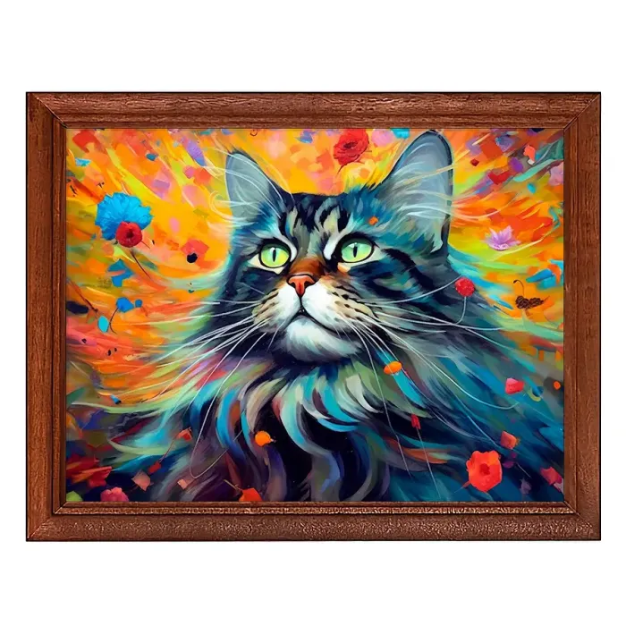 Постер в рамке с изображением кота, выполненный в технике акварели.