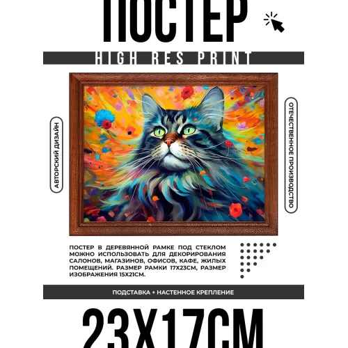 Постер в рамке 22х17см Кот акварель POSG-0334