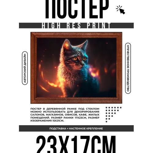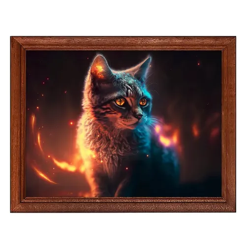 Постер в рамке для интерьерного декора. Изображение «Волшебная кошка» в деревянной рамке с пластиковым стеклом.