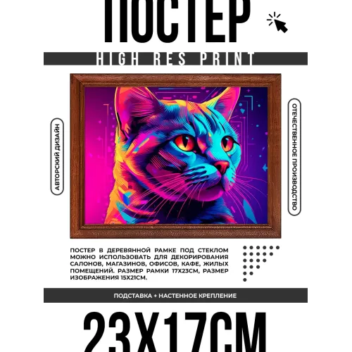 Постер в рамке 22х17см Неоновый кот POSG-0340