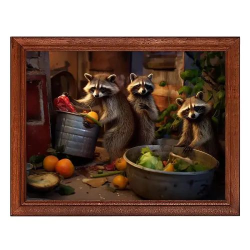 Постер в рамке с изображением енотов для оформления интерьера.