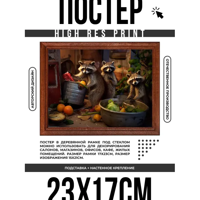 Постер в рамке 22х17см Еноты POSG-0356