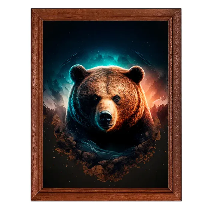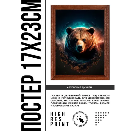 Постер в рамке с изображением медведя для настенного или настольного размещения. Рамка деревянная, изображение защищено пластиковым стеклом.