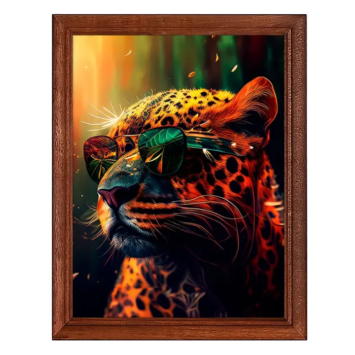 Постер в рамке с изображением леопарда в очках для интерьерного декора.