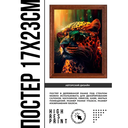 Постер в рамке 17х22см Леопард в очках POSV-0351