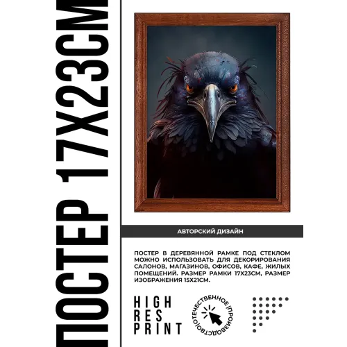 Постер в рамке для интерьерного декора. Деревянная рамка с пластиковым стеклом и двумя вариантами размещения.