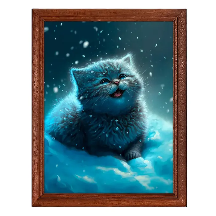 Постер в рамке для интерьерного декора с изображением кота в снегу.