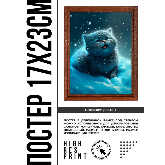 Постер в рамке 17х22см Кот в снегу POSV-0378