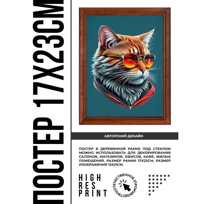 Постер в рамке для интерьерного декора. Деревянная рамка с пластиковым стеклом.