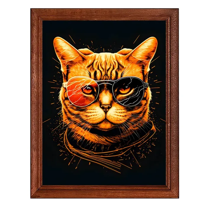 Постер в рамке с изображением кота анфас для интерьерного декора. Деревянная рама с пластиковым стеклом.