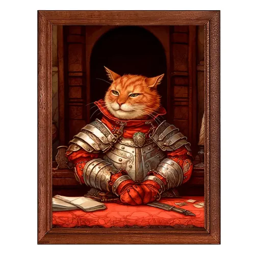 Постер 'Кот в доспехах' — это оригинальный элемент декора, который привнесет уют и стиль в любое пространство. С культурным контекстом, отражающим игривость и смелость, этот постер станет ярким акцентом в интерьере.