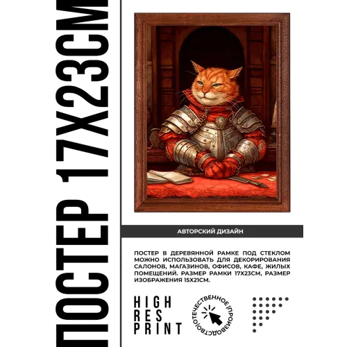 Постер в рамке 17х22см Кот в доспехах POSV-0406
