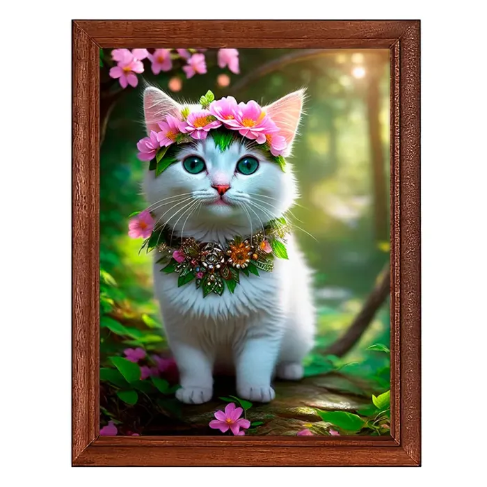Постер в рамке для интерьерного декора. Изображение котёнка с венком.