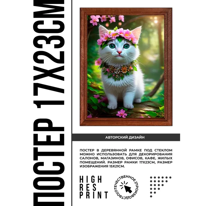 Постер в рамке 17х22см Котенок с венком POSV-0414
