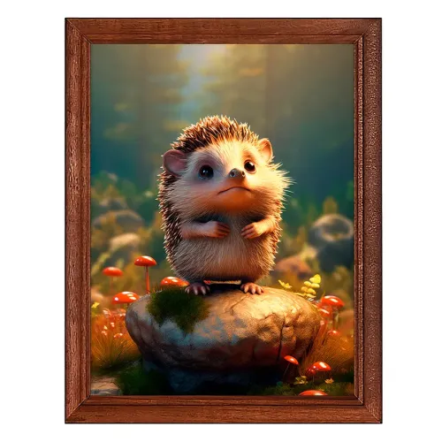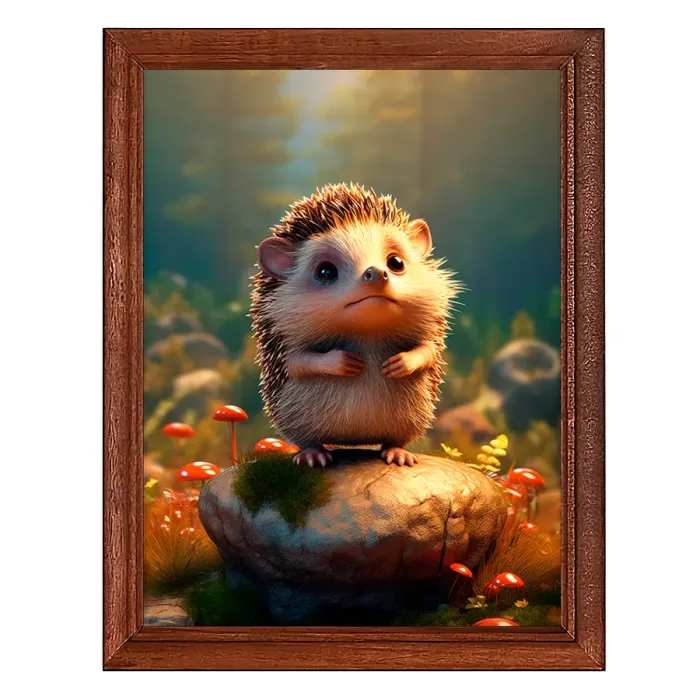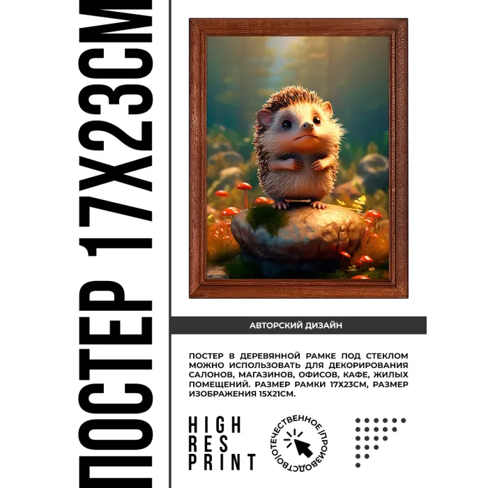 Постер в рамке с изображением ёжа для интерьерного декора. Деревянная рама под пластиковым стеклом.