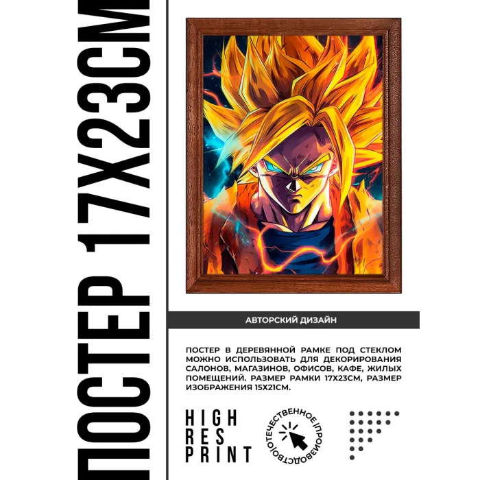 Постер в рамке для интерьерного декора. Деревянная рама с пластиковым стеклом и ножкой для установки на поверхность или подвешивания.