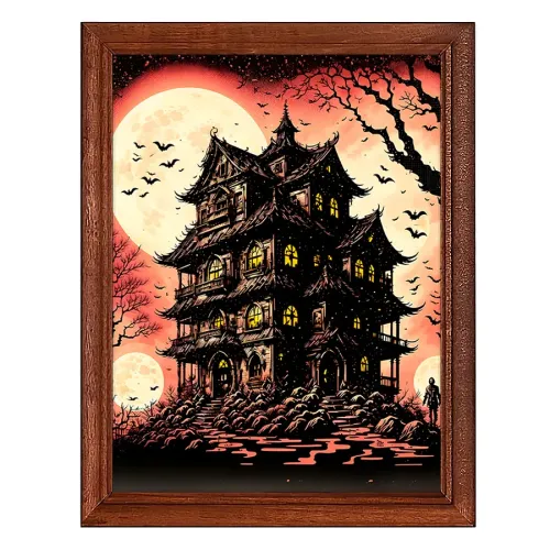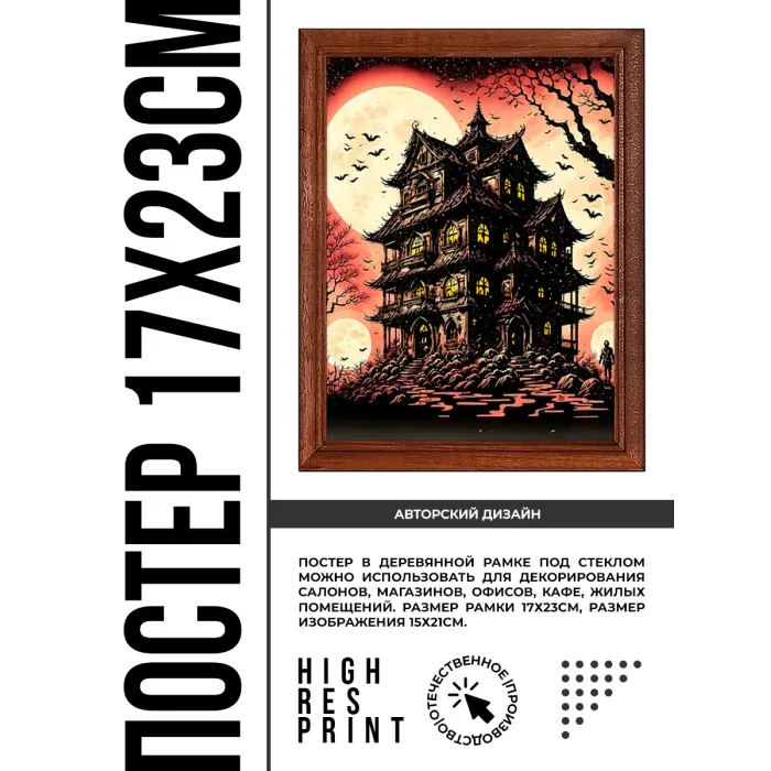 Постер в рамке для интерьерного декора. Деревянная рама с пластиковым стеклом и изображением «Зачарованный дом».