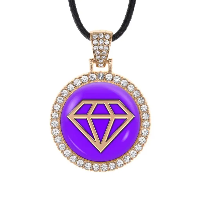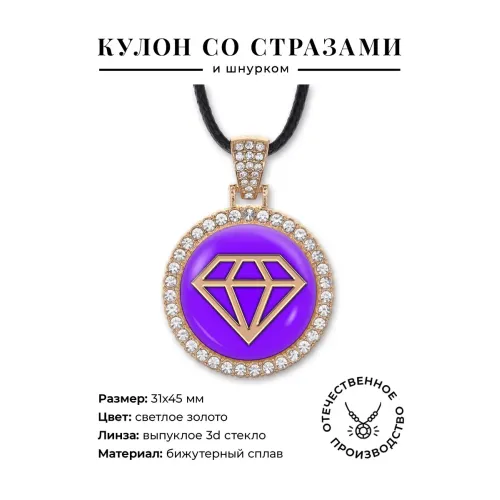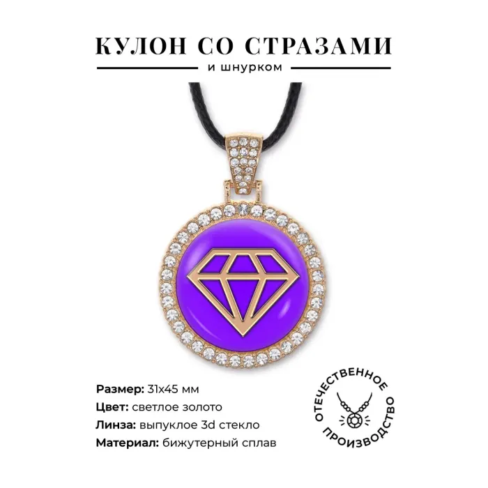 Кулон из бижутерного сплава со стразами и покрытием под светлое золото. Изображение защищено выпуклой стеклянной линзой.