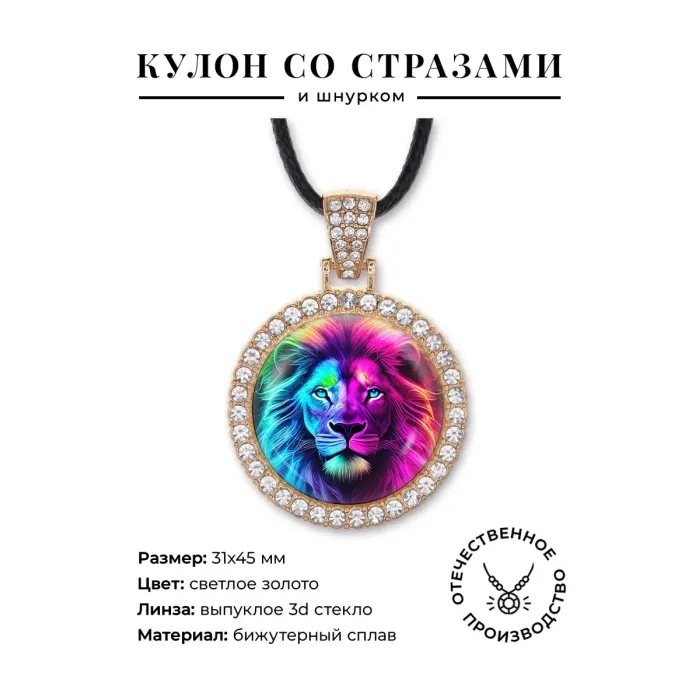 Кулон со стразами Лев, цвет светлое золото ALKS0102