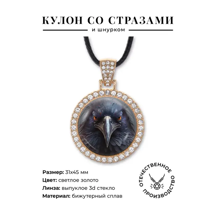 Кулон со стразами Ворон, цвет светлое золото ALKS0106