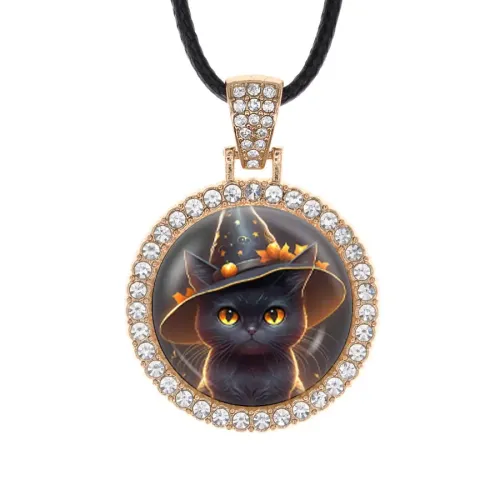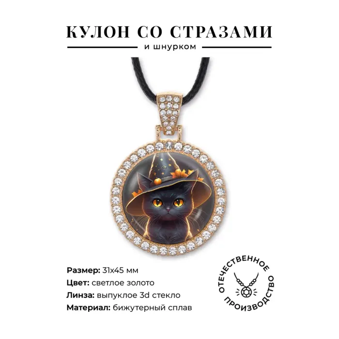 Кулон со стразами Кот чародей, цвет светлое золото ALKS0113